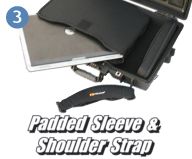 Top Loading Padded Sleeve, for extra protection or for when you travel often between meetings and don't want the extra weight of the hard case. With Shoulder Strap for easier handling.